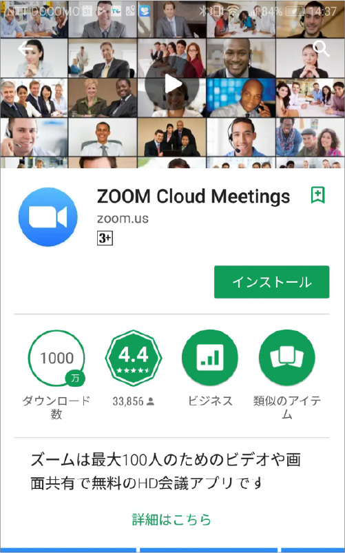 「Google Play」でもアプリを名前で検索できます。検索窓に「ZOOM」と入力します。「ZOOM Cloud Meetings」というアプリが該当のアプリです。